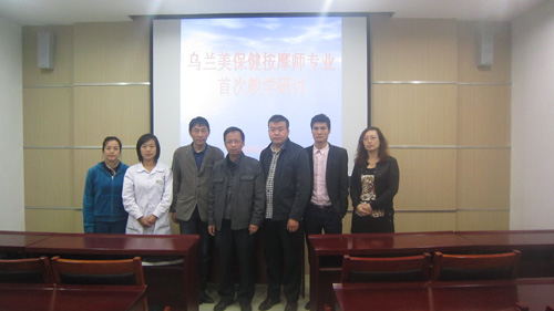 2014年5月14日下午,烏蘭美保健按摩第一次教學(xué)研討會(huì)在烏蘭美多媒體教室舉行,參會(huì)人員有天行健養(yǎng)生會(huì)館總經(jīng)理韓澤明、店長成偉周、培訓(xùn)師王秀美,烏蘭美副總經(jīng)理袁秀林、教務(wù)處負(fù)責(zé)人聶彥霞及保健按摩專業(yè)教師孫正捷、王俊芬。