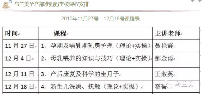 【通知】烏蘭美孕產部準媽媽學校課程通知發(fā)布時間: 2016-11-25 -